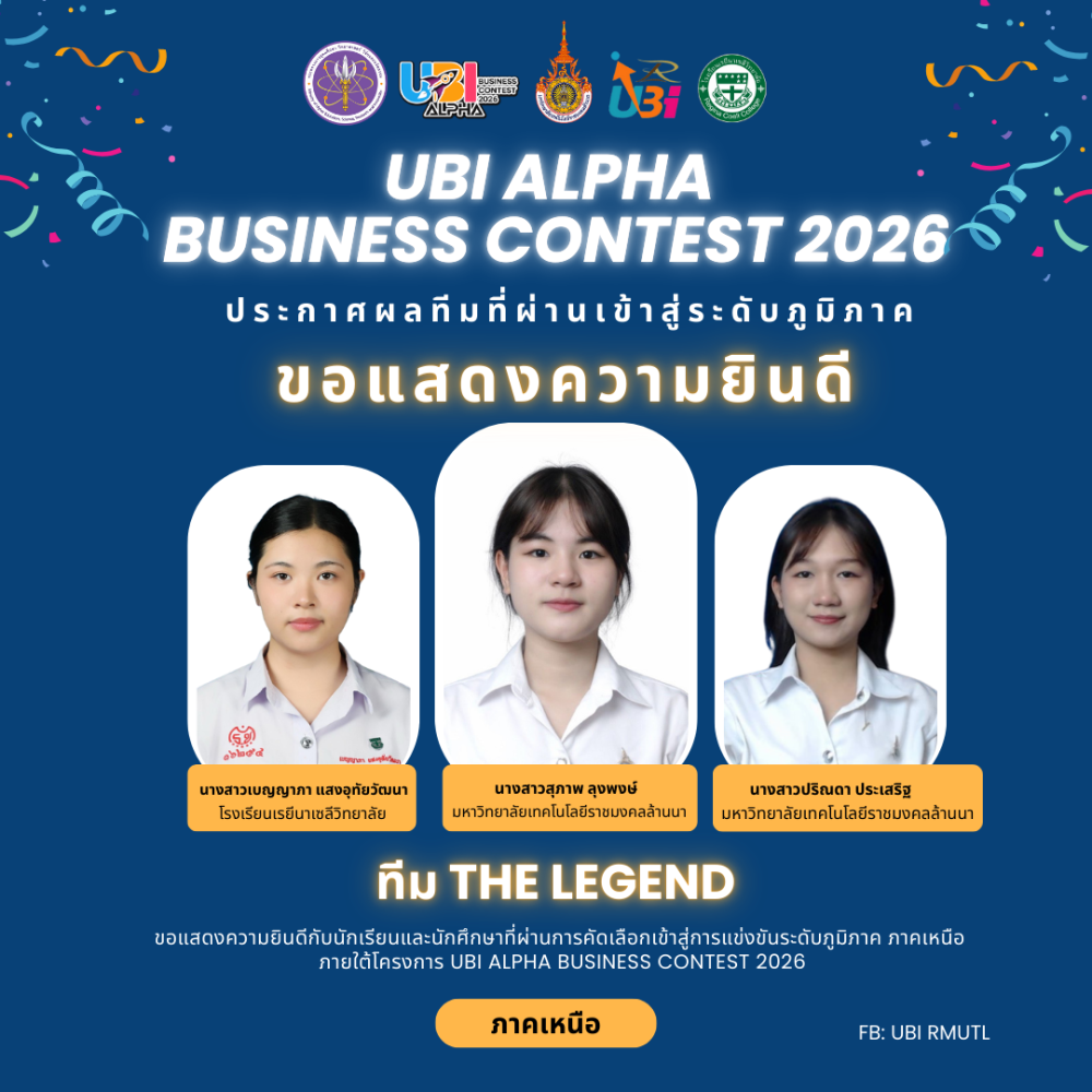 โครงการ UBI ALPHA BUSINESS CONTEST 2026 ซึ่งเป็นเวทีการแข่งขันแผนธุรกิจและนวัตกรรม ชิงเงินรางวัลมูลค่า 10,000 บาท